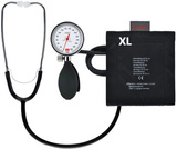 - Manualne (zegarowe) ciśnieniomierze XL ze stetoskopem wbudowanym do mankietu umożliwiają pomiar metodą osłuchową - dokładniejszą i preferowaną przez profesjonalistów. Dzięki większemu mankietowi z pierścieniem "D" zintegrowanym ze stetoskopem, są przystosowane do samodzielnego i łatwego pomiaru ciśnienia w domu.