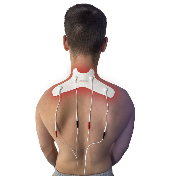 Nowoczesna czteropolowa elektroda do elektrostymulacji odcinka szyjnego kręgosłupa, przeznaczona do stosowania z urządzeniami TENS, EMS oraz z prądami interferencyjnymi (IFC). Zamiast czterech osobnych elektrod, które trzeba każdorazowo rozmieścić na skórze, stosujesz gotową do użycia jedną zintegrowaną elektrodę obsługującą dwa kanały stymulacji.